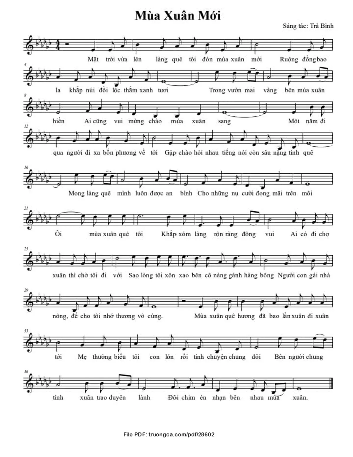 Trà Bình Mặt trời vừa lên làng quê tôi đón mùa xuân mới [PDF] [Sheet] [Lời H.A] [Mp4/Midi]