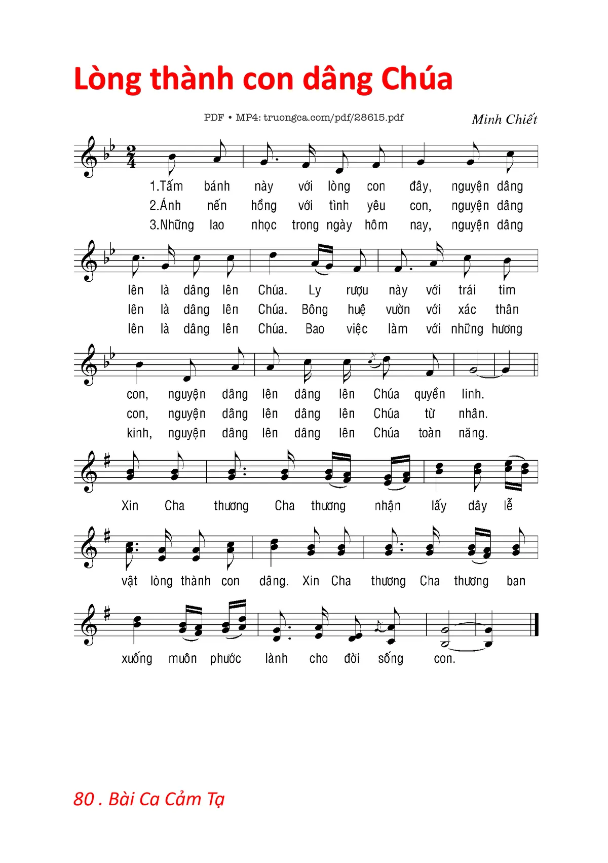 Điệp khúc. Xin Cha thương, Cha thương nhận lấy, đây lễ vật lòng thành con dâng. Xin Cha thương, Cha thương ban xuống, muôn phúc lành cho đời sống con.