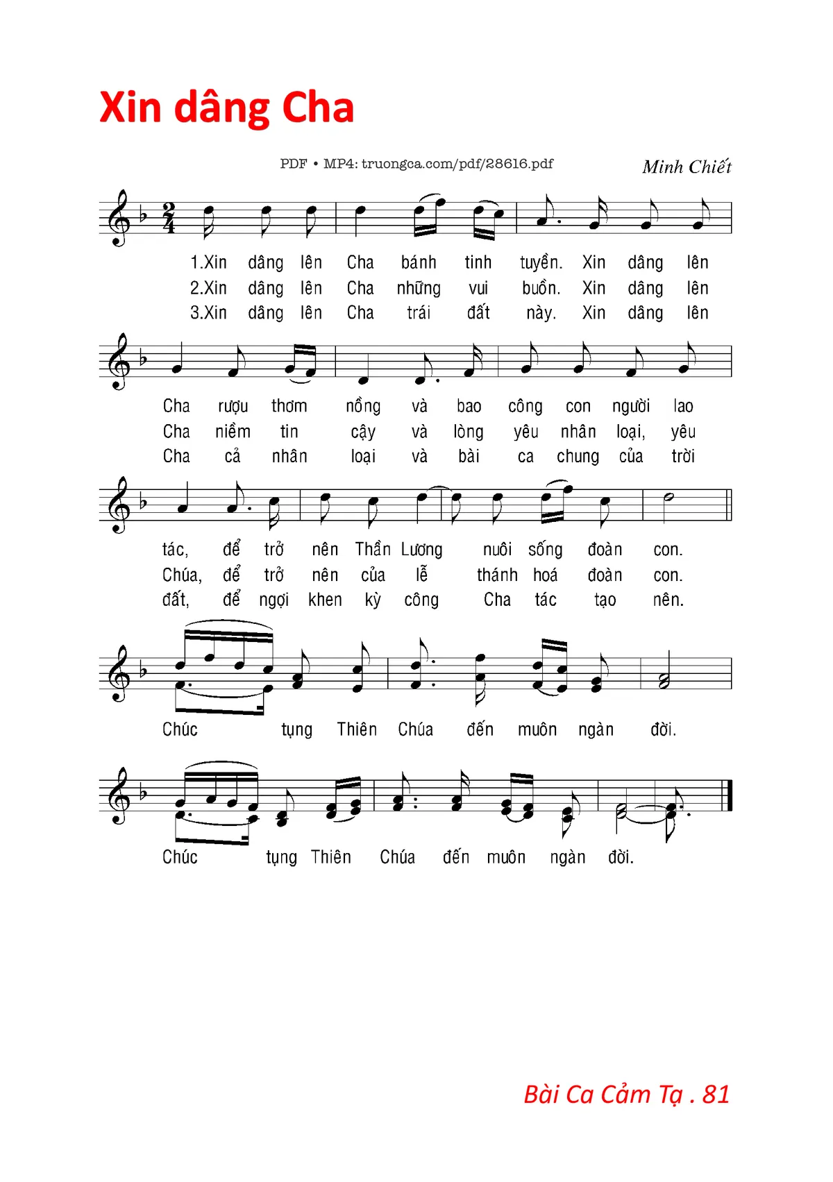 Các sheet PDF cùng tên Xin Dâng Cha:
