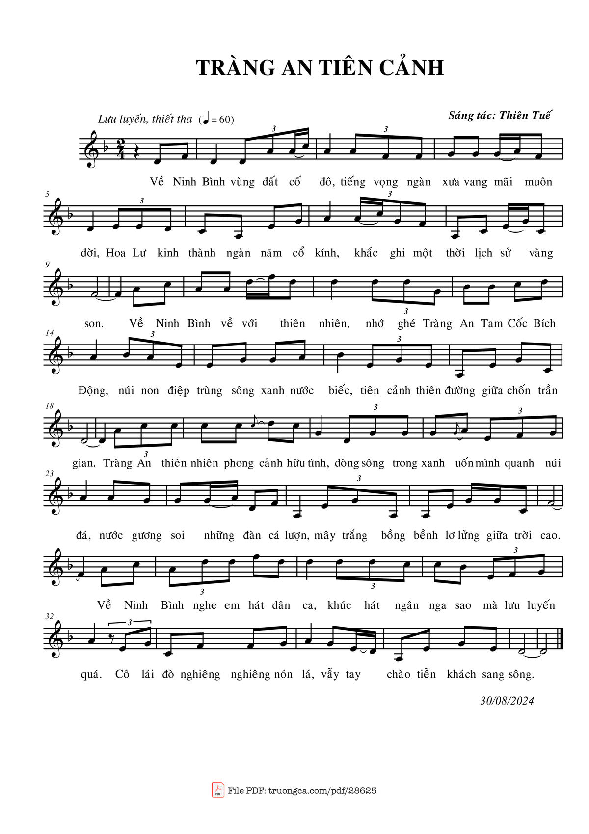 Thiên Tuế Về Ninh Bình vùng đất cố đô Tiếng vọng ngàn xưa vang mãi muôn đời [PDF] [Sheet] [Lời H.A] [Mp4/Midi]