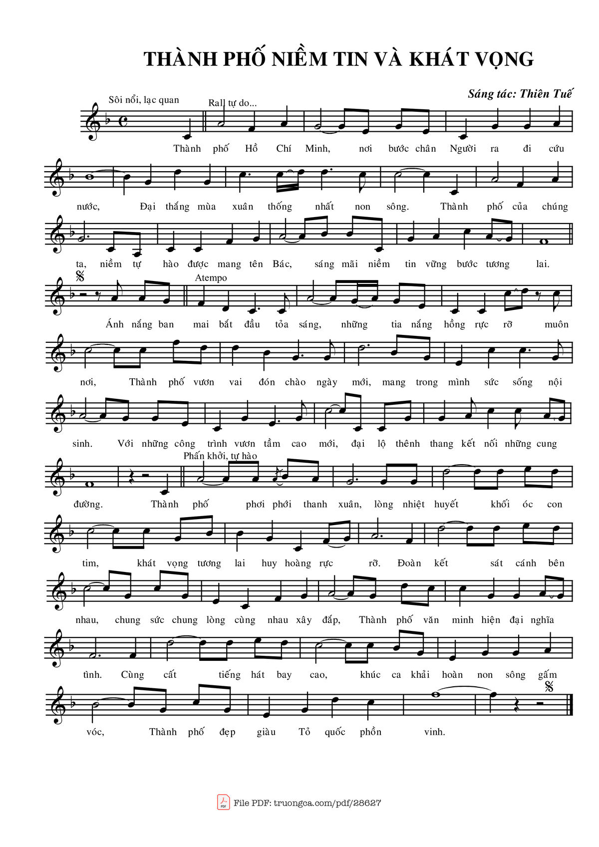 Thiên Tuế Thành phố Hồ Chí Minh Nơi bước chân Người ra đi cứu nước [PDF] [Sheet] [Lời H.A] [Mp4/Midi]