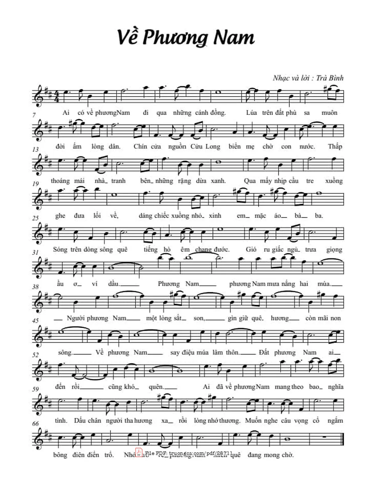 Trà Bình Ai có về phương Nam đi qua những cánh đồng [PDF] [Sheet] [Lời H.A] [Mp4/Midi]
