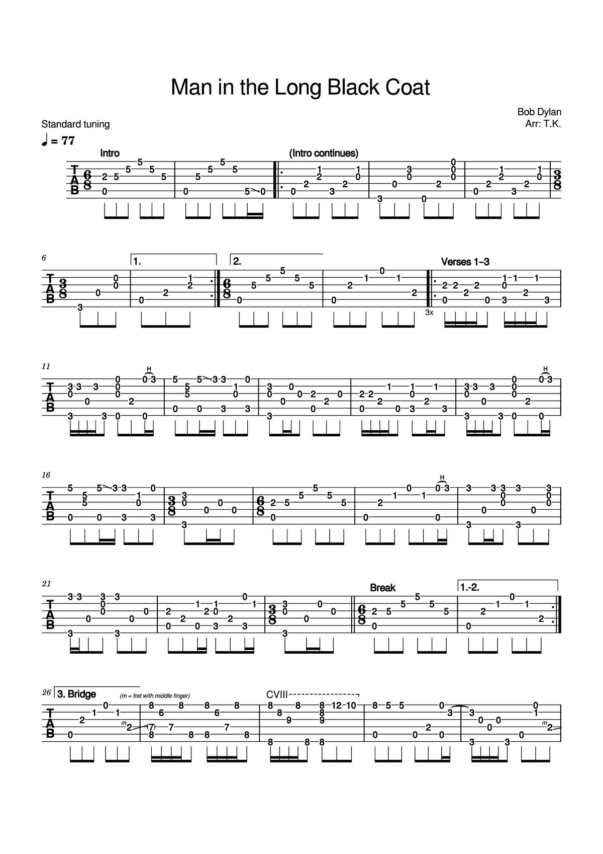 Download and print in PDF or MIDI free sheet music of man in the long black coat - Bob Dylan for Man In The Long Black Coat by Bob Dylan arranged by Guitar Globe for Guitar (Solo)