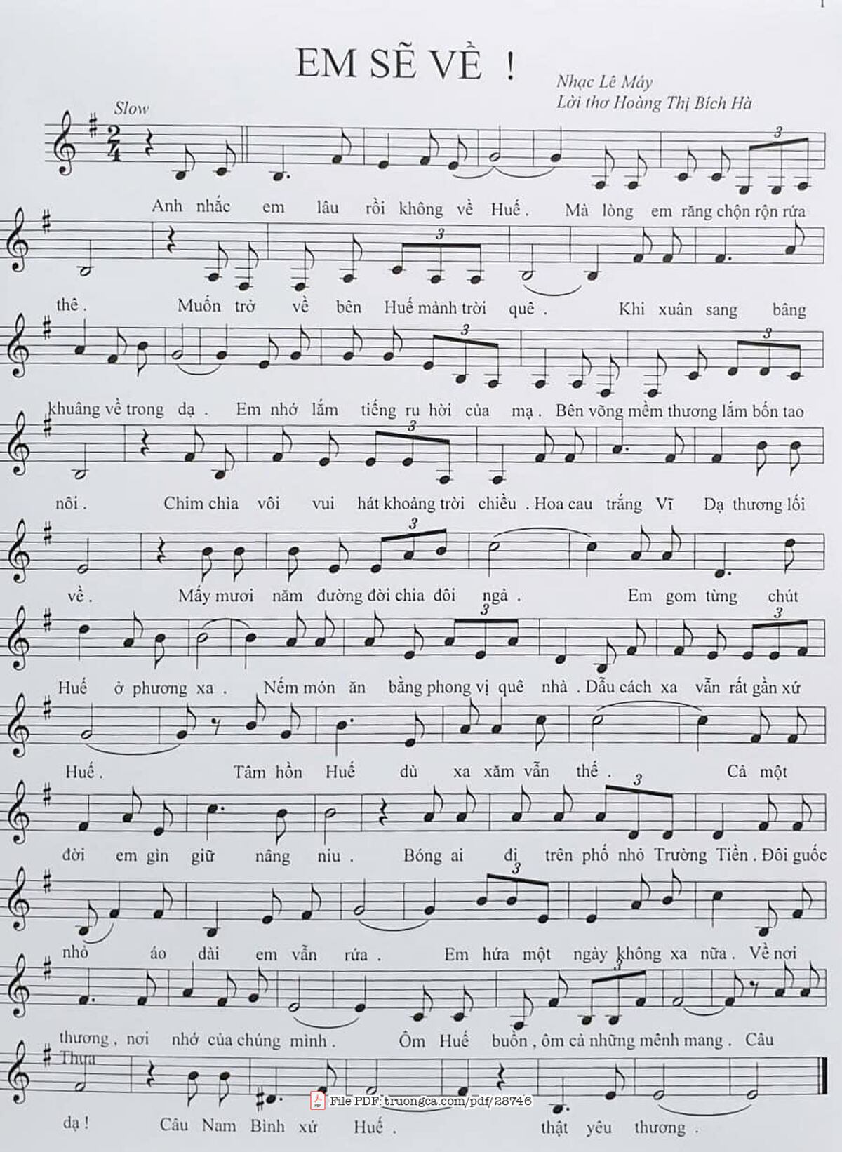 Lê Máy Anh nhắc em lâu rồi không về Huế Mà lòng em răng chộn rộn rứa thê [PDF] [Sheet] [Lời H.A] [Mp4/Midi]