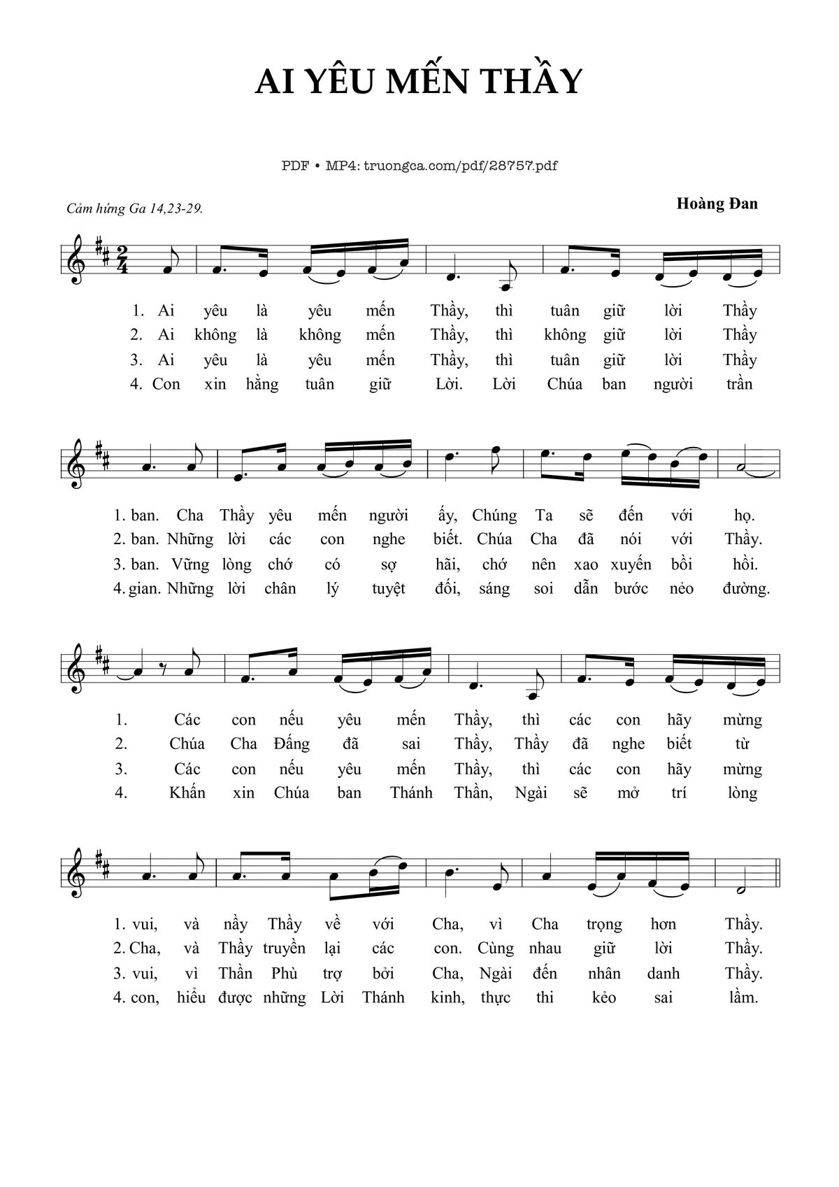 Hoàng Đan Ai yêu là yêu mến Thầy thì tuân giữ Lời Thầy ban [PDF] [Sheet] [Lời H.A] [Mp4/Midi]