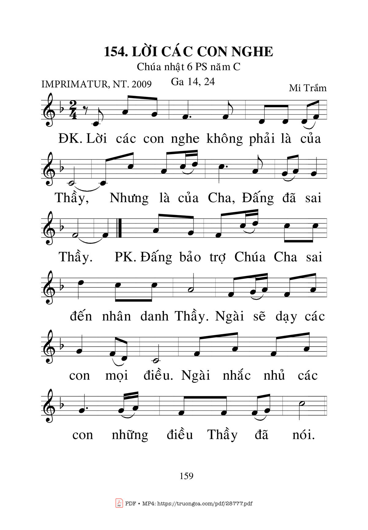 Mi Trầm Lời các con nghe không phải là của Thầy [PDF] [Sheet] [Lời H.A] [Mp4/Midi]