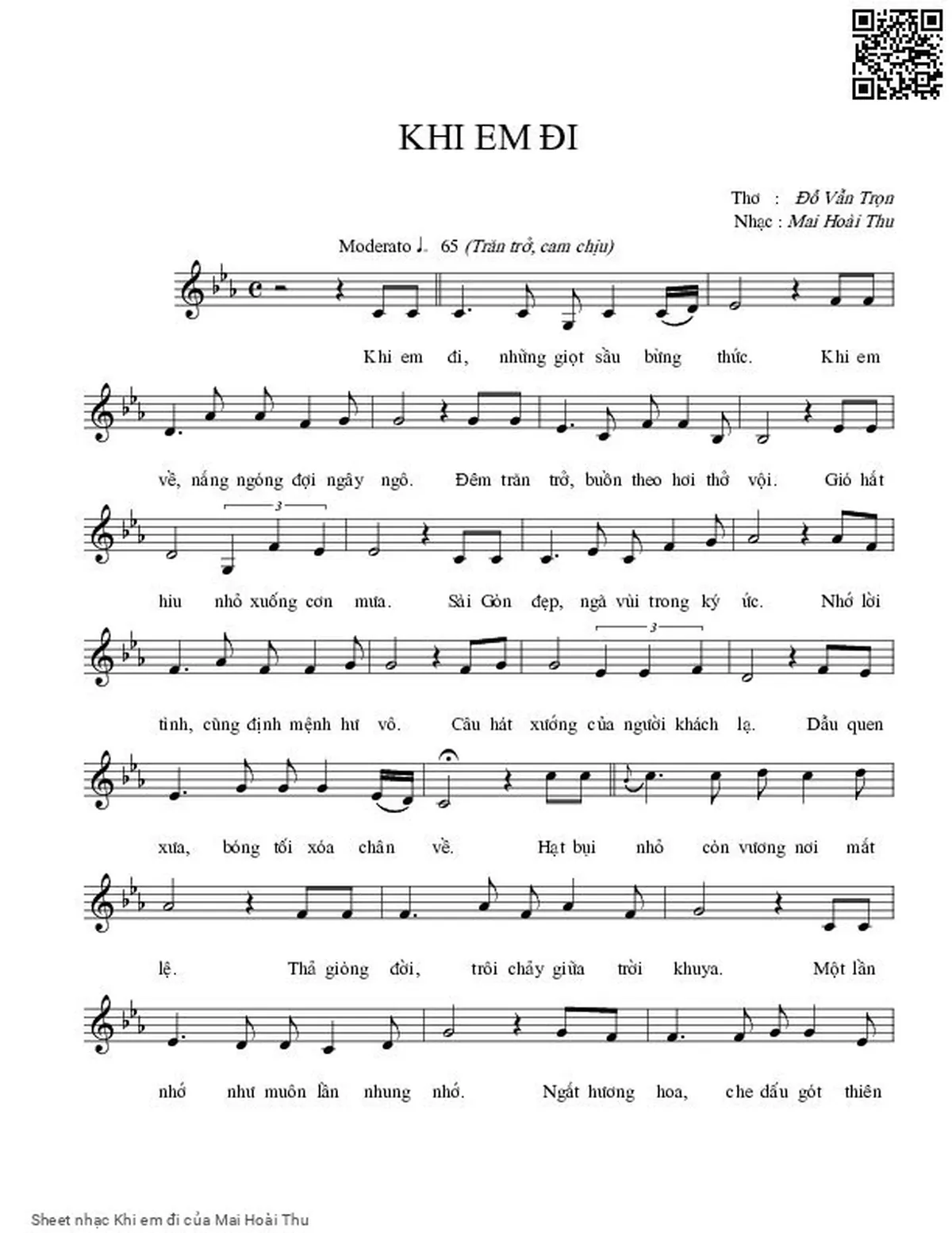 Mai Hoài Thu Khi em đi những giọt sầu bừng thức Khi em về nắng ngóng đợi ngây ngô [PDF] [Sheet] [Lời H.A] [Mp4/Midi]