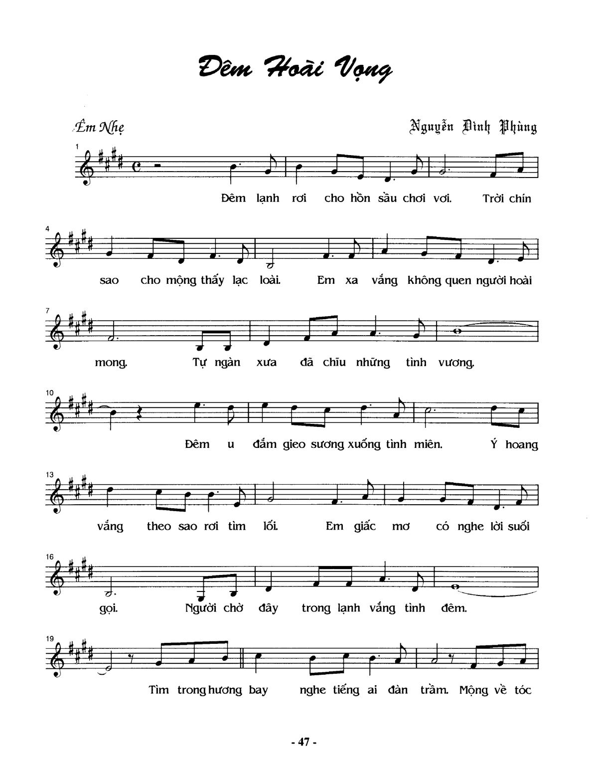 Nguyễn Đình Phùng Đêm lạnh rơi cho hồn sầu chơi vơi Trời chín sao cho mộng thấy lạc loài [PDF] [Sheet] [Lời H.A] [Mp4/Midi]