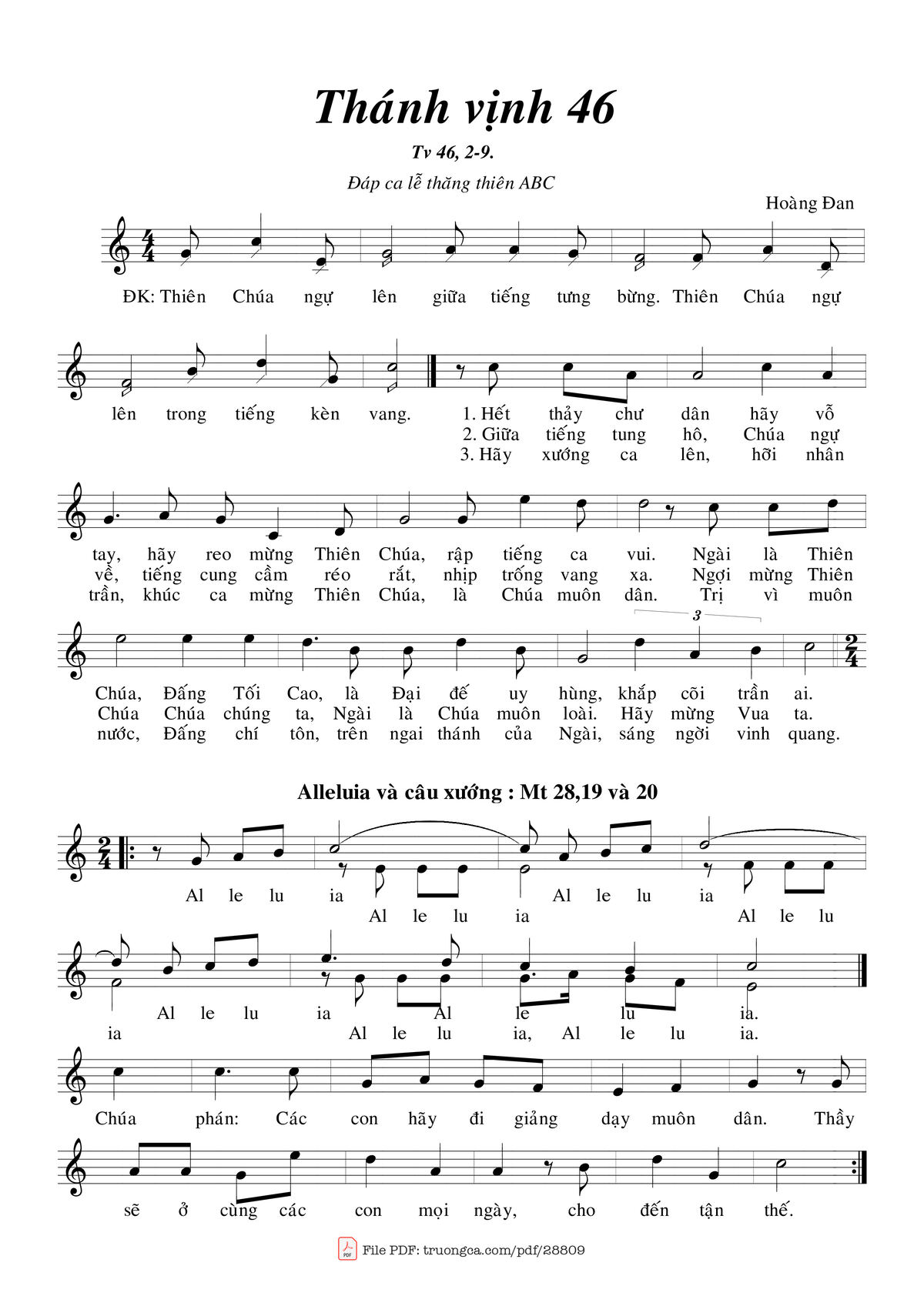 Trang 1 của Sheet nhạc PDF bài hát Thánh Vịnh 46, Lễ Thăng Thiên - Hoàng Đan
