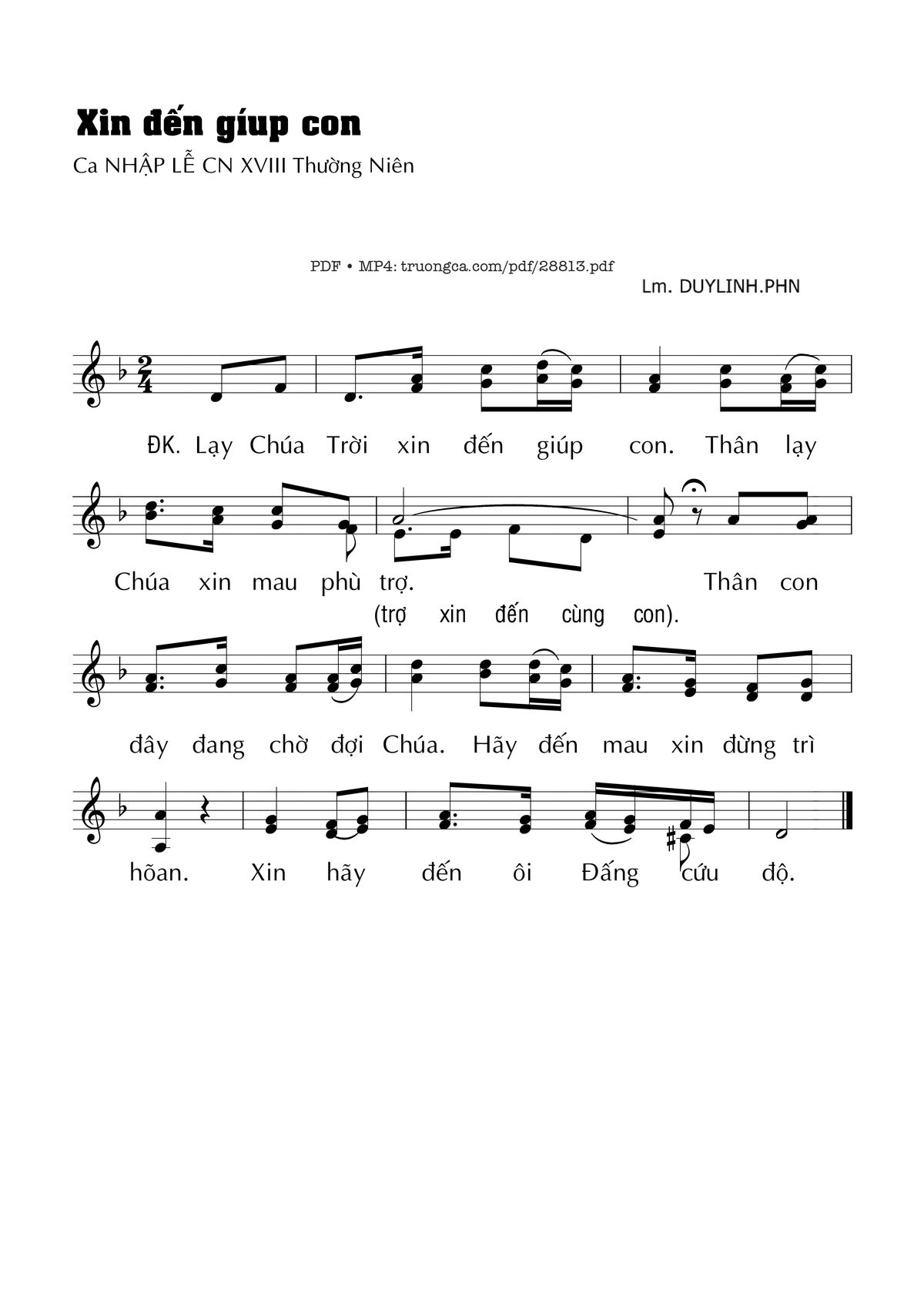 Điệp khúc. Lạy Chúa Trời xin đến giúp con. Thân lạy Chúa xin mau phù trợ. Thân con đây đang chờ đợi Chúa. Hãy đến mau xin đừng trí hoãn. Xin hãy đến ôi Đấng cứu độ.