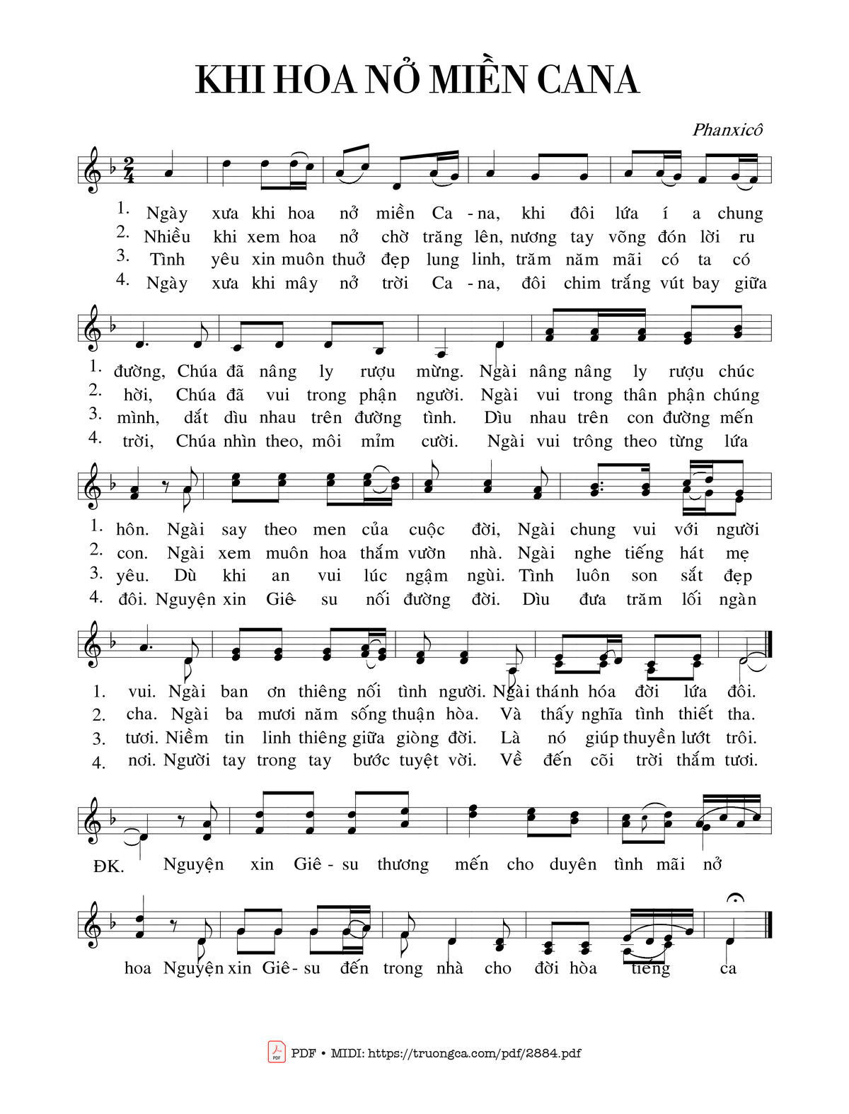 Phanxicô Ngày xưa khi hoa nở miền Ca na khi đôi lứa chung đường [PDF] [Sheet] [Lời H.A] [Mp4/Midi]