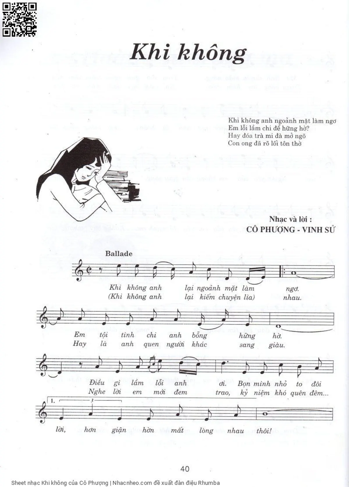 Phần nghe hát Khi không (Cô Phượng) được nhúng từ Youtube, Musescore hoặc link ngoài và chịu sự kiểm soát bản quyền của bên thứ ba đó, vì vậy có thể bị xóa hoặc chèn quảng cáo bất kỳ lúc nào. Nếu bạn không nghe - xem được ca sĩ hát tức là đã bị Youtube hoặc Musescore kiểm soát.