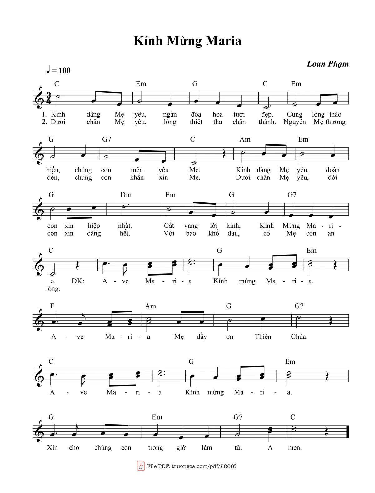 Câu đầu: Kính Mừng Maria Sáng Tác Loan Pham Kính dâng Mẹ yêu