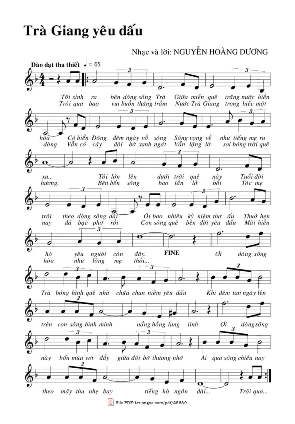 Nguyễn Hoàng Dương Tôi sinh ra bên dòng sông Trà Giữa miền quê trăng nước hiền hòa [PDF] [Sheet] [Lời H.A] [Mp4/Midi]