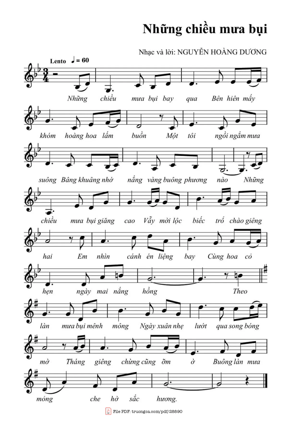 Nguyễn Hoàng Dương Những chiều mưa bụi bay qua Bên hiên mấy khóm hoàng hoa lấm buồn [PDF] [Sheet] [Lời H.A] [Mp4/Midi]
