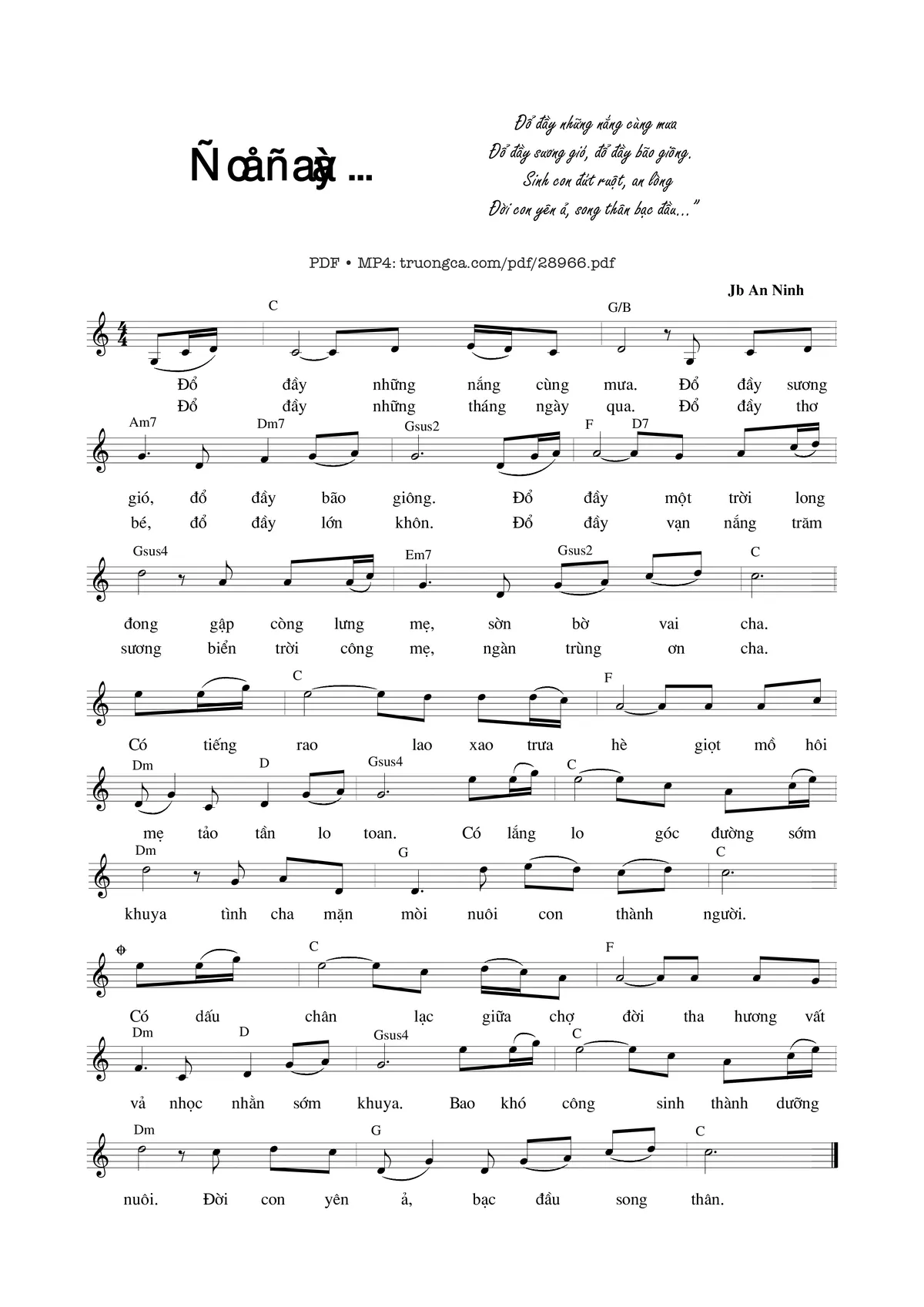 Jb. An Ninh Cha Mẹ Đổ đầy những nắng cùng mưa Đổ đầy sương gió [PDF] [Sheet] [Lời H.A] [Mp4/Midi]