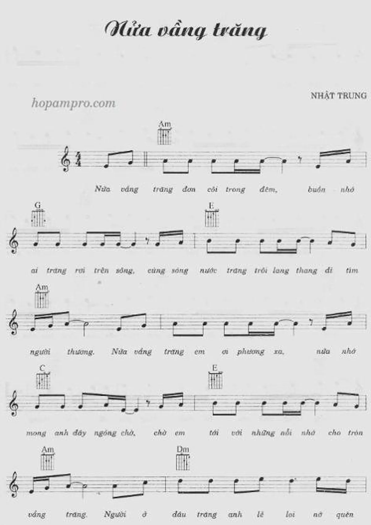 Sheet Nữa Vầng Trăng PDF (Chưa Chọn), hợp âm