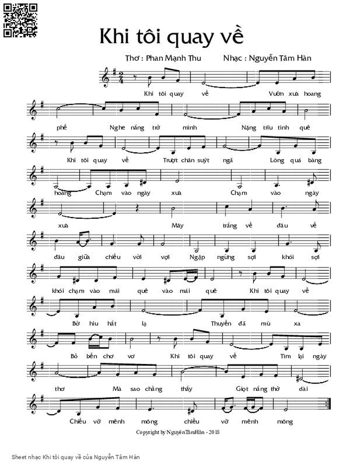 Chọn nút dấu + để tăng tông lên nửa cung, nút dấu - để giảm tông xuống nửa cung. Rê chuột vào hợp âm để xem các thế bấm hợp âm của bài hát Khi tôi quay về.