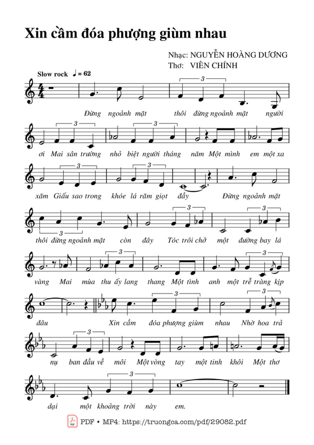 Nguyễn Hoàng Dương Đừng ngoảnh mặt Thôi đừng ngoảnh mặt người ơi [PDF] [Sheet] [Lời H.A] [Mp4/Midi]