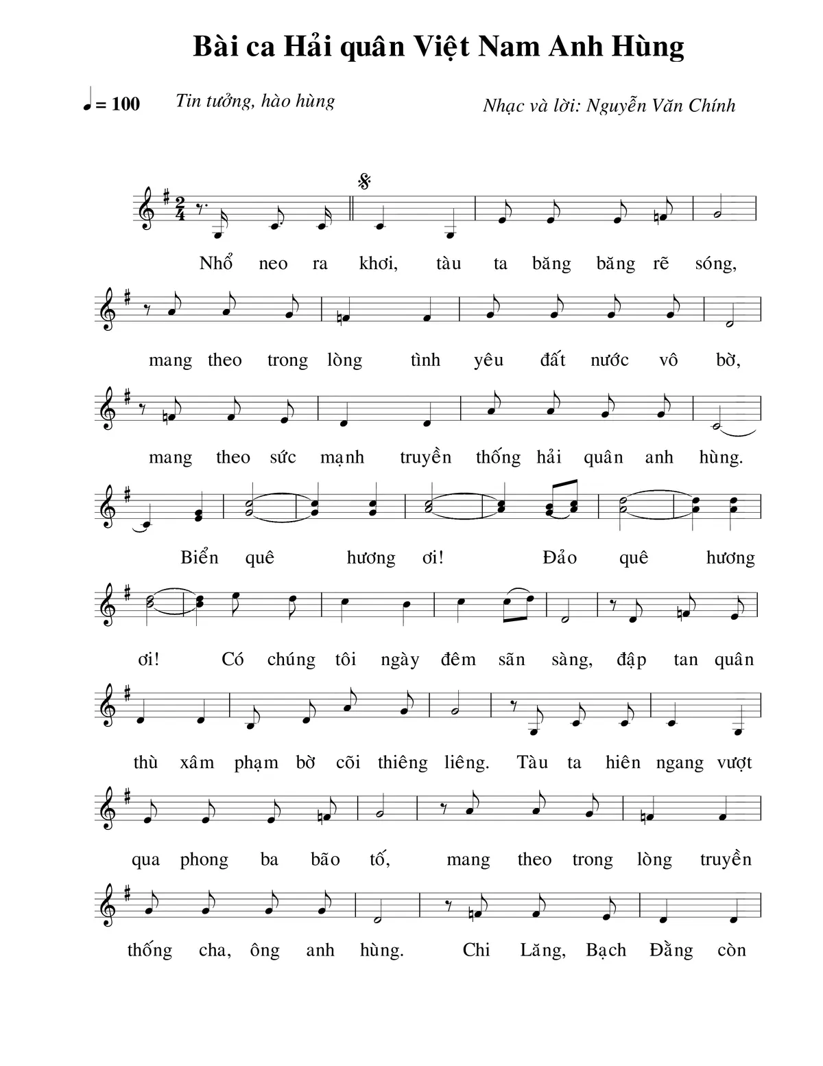 Nguyễn Văn Chính Nhổ neo ra khơi tàu ta băng băng rẽ sóng Mang theo trong lòng tình yêu đất nước vô bờ [PDF] [Sheet] [Lời H.A] [Mp4/Midi]