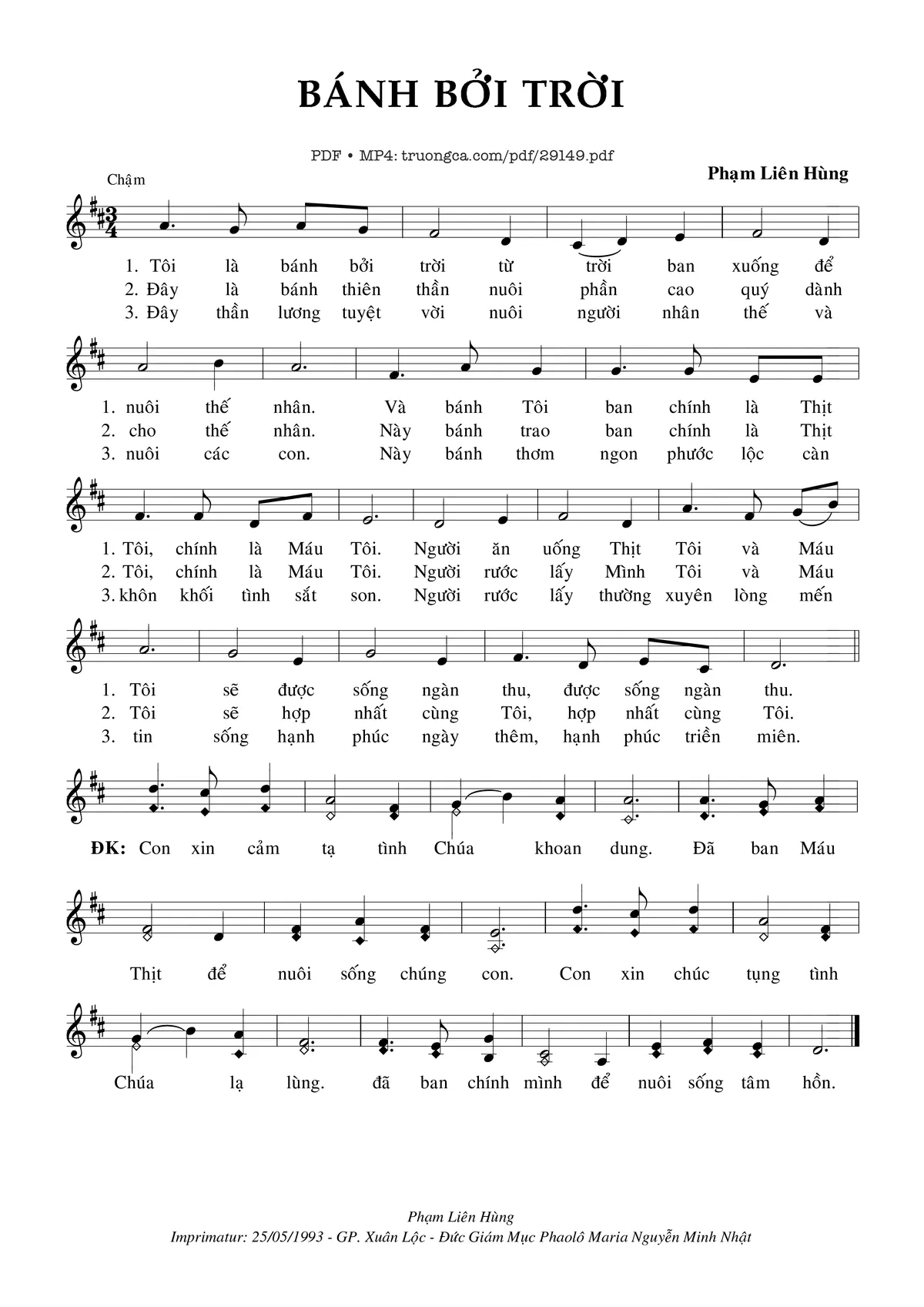 Phạm Liên Hùng Tôi là bánh bởi trời từ trời ban xuống để nuôi thế nhân [PDF] [Sheet] [Lời H.A] [Mp4/Midi]