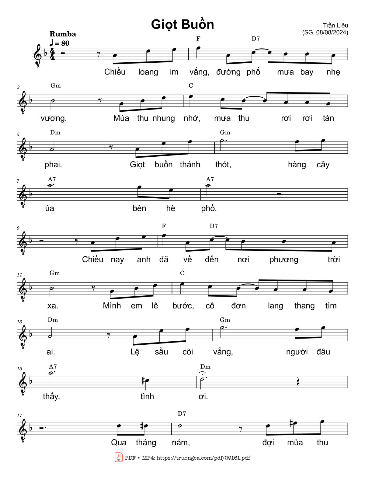 Trần Liêu Chiều loang im vắng đường phố mưa bay nhẹ vương [PDF] [Sheet] [Lời H.A] [Mp4/Midi]