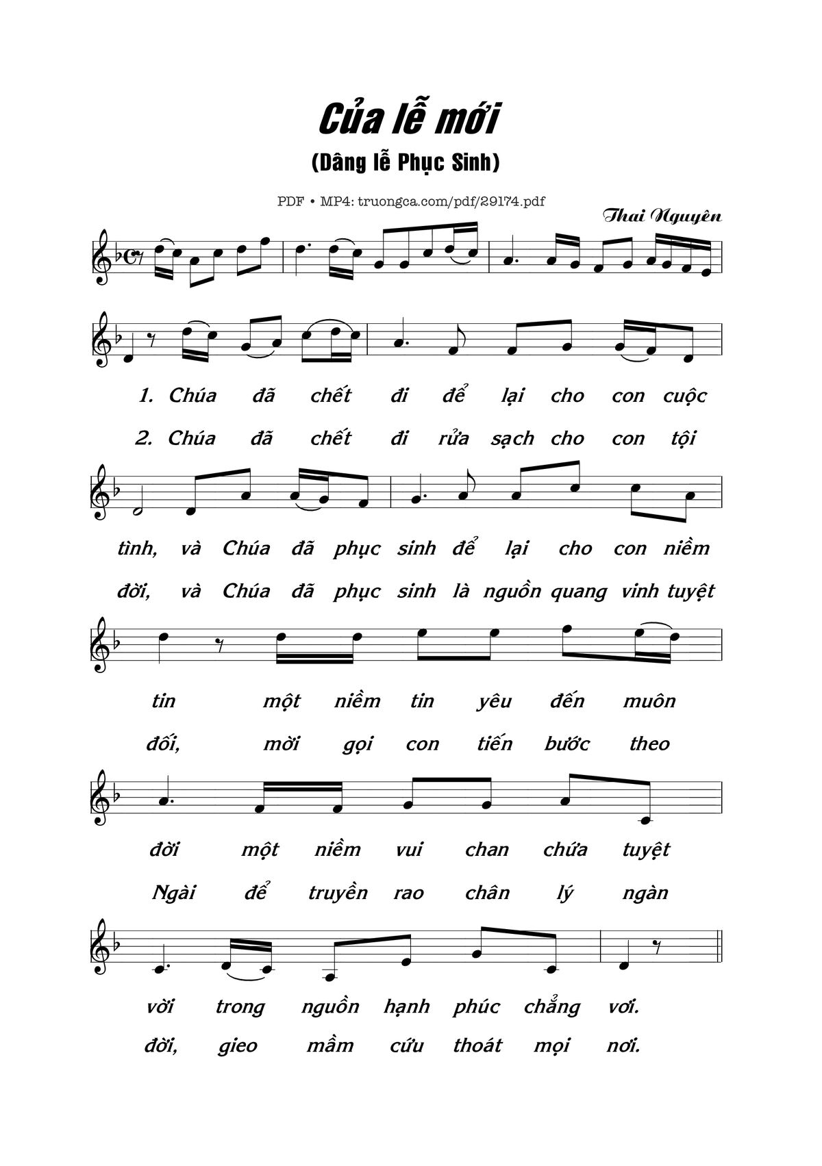 Thái Nguyên Chúa đã chết đi để lại cho con cuộc tình [PDF] [Sheet] [Lời H.A] [Mp4/Midi]