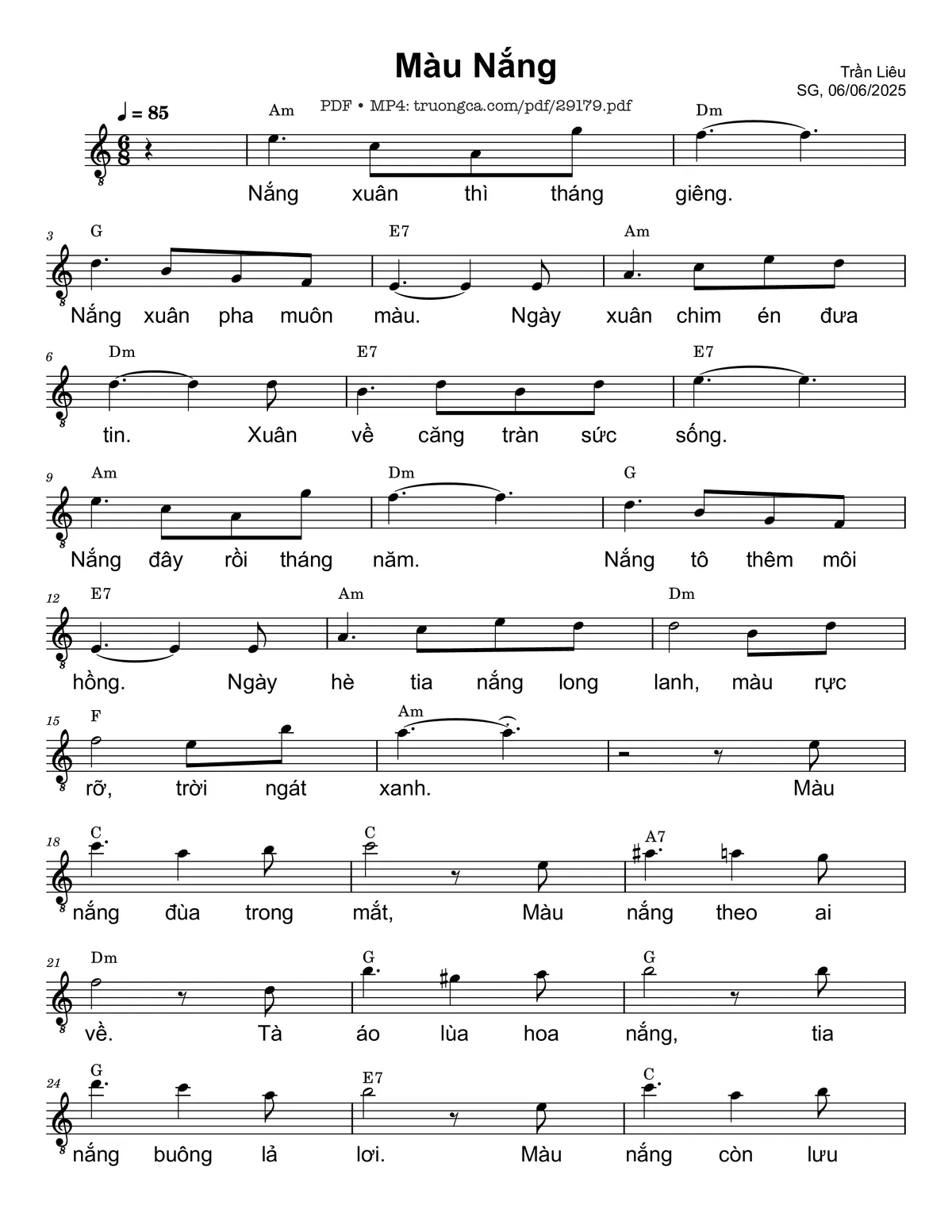 Trần Liêu Nắng xuân thì tháng giêng Nắng xuân pha muôn màu [PDF] [Sheet] [Lời H.A] [Mp4/Midi]