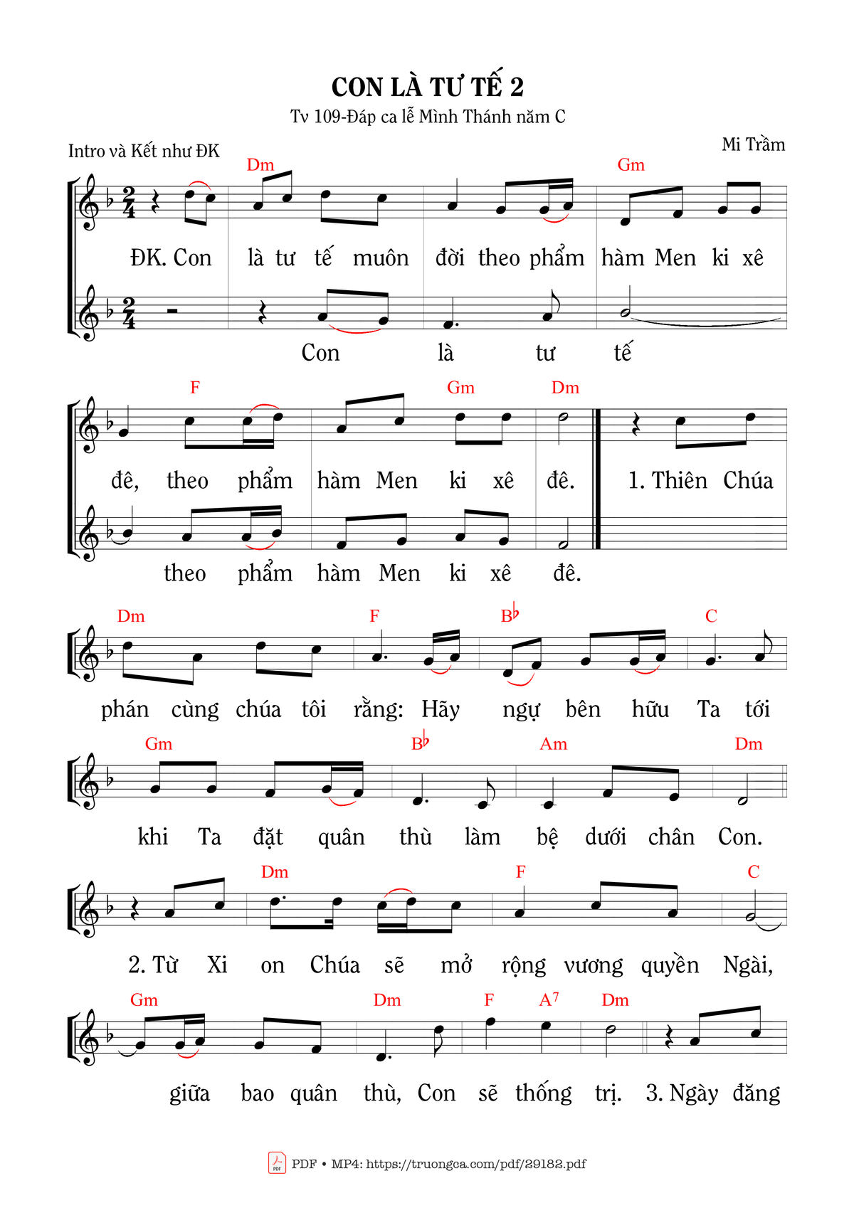 Các sheet PDF tương tự Thánh Vịnh 109, Con Là Tư Tế: