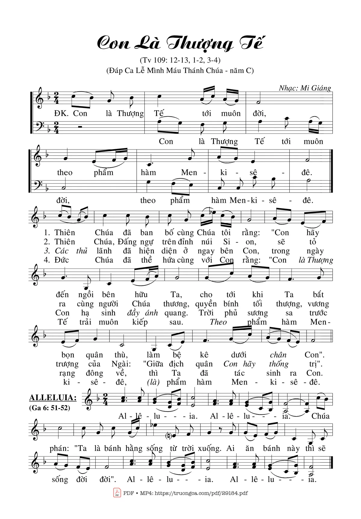 Các sheet PDF cùng tên Thánh Vịnh 109, Con Là Thượng Tế: