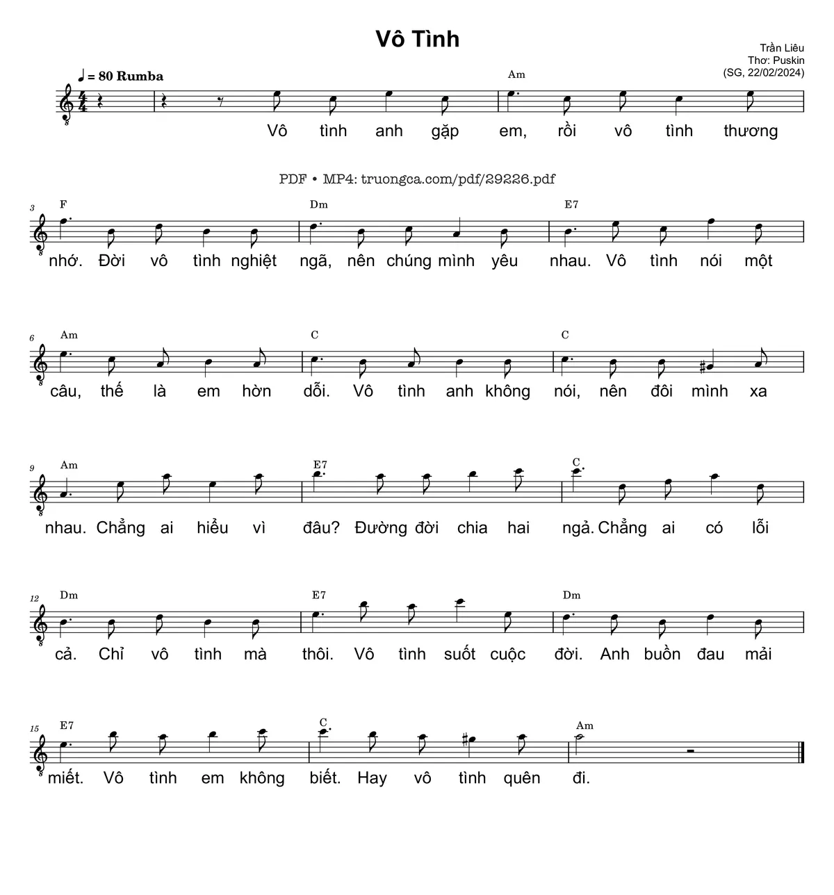 Trần Liêu Vô tình anh gặp em Rồi vô tình thương nhớ [PDF] [Sheet] [Lời H.A] [Mp4/Midi]