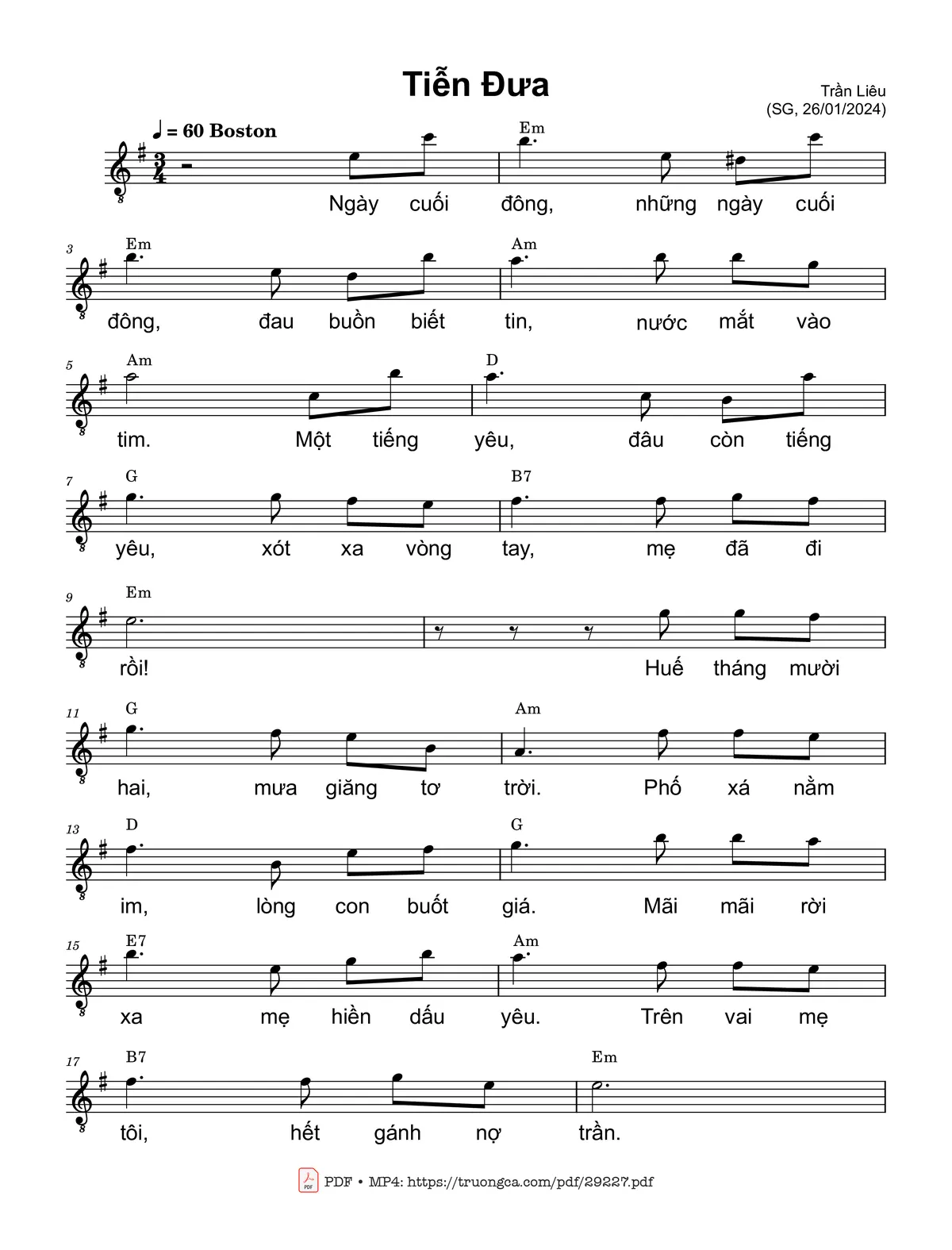 Trần Liêu Ngày cuối đông những ngày cuối đông Đau buồn biết tin [PDF] [Sheet] [Lời H.A] [Mp4/Midi]