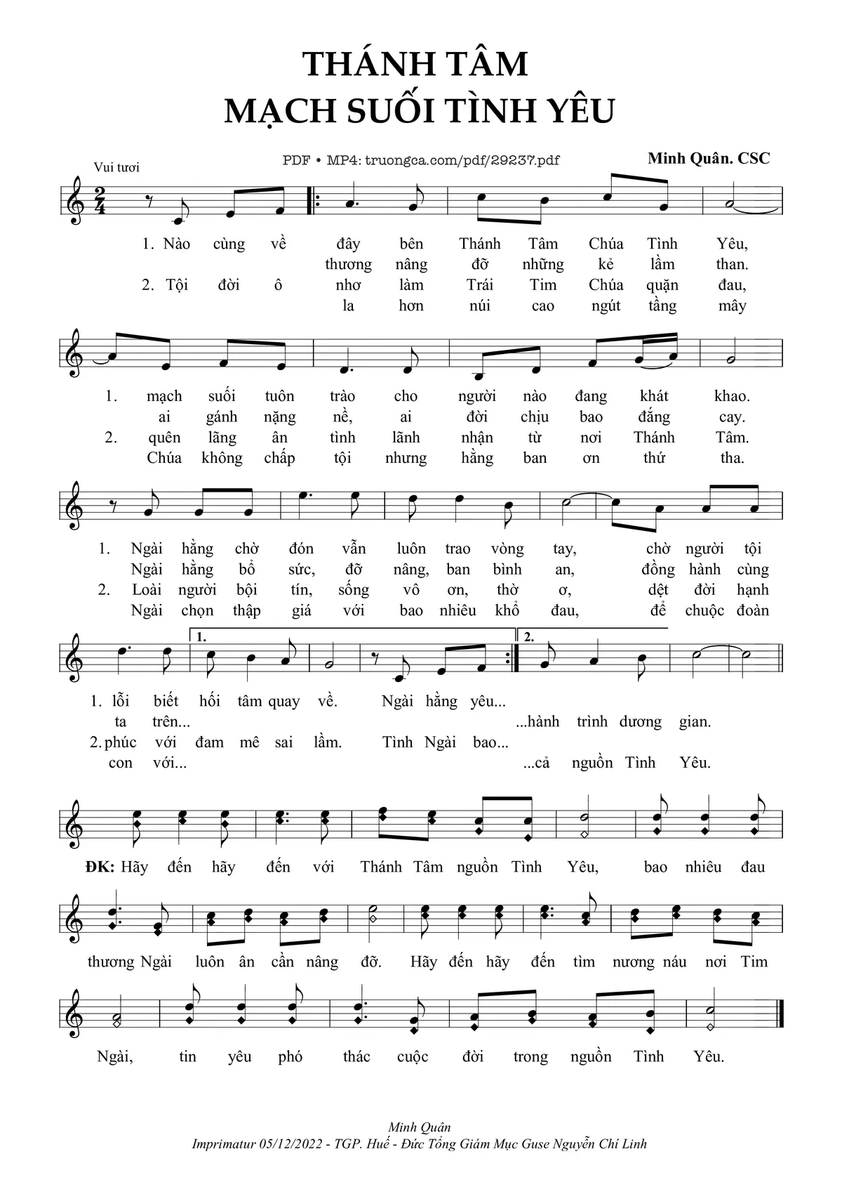 Minh Quân Nào cùng về đây bên Thánh Tâm Chúa Tình Yêu [PDF] [Sheet] [Lời H.A] [Mp4/Midi]