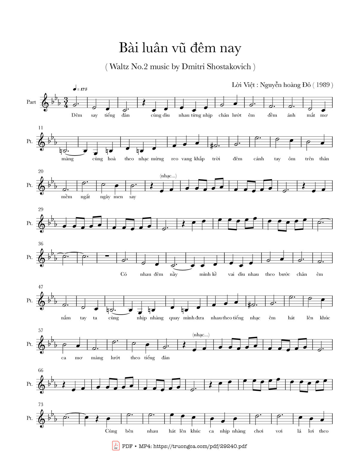 Dmitri Shostakovich Đêm say tiếng đàn Cùng dìu nhau từng nhịp chân lướt êm đềm [PDF] [Sheet] [Lời H.A] [Mp4/Midi]