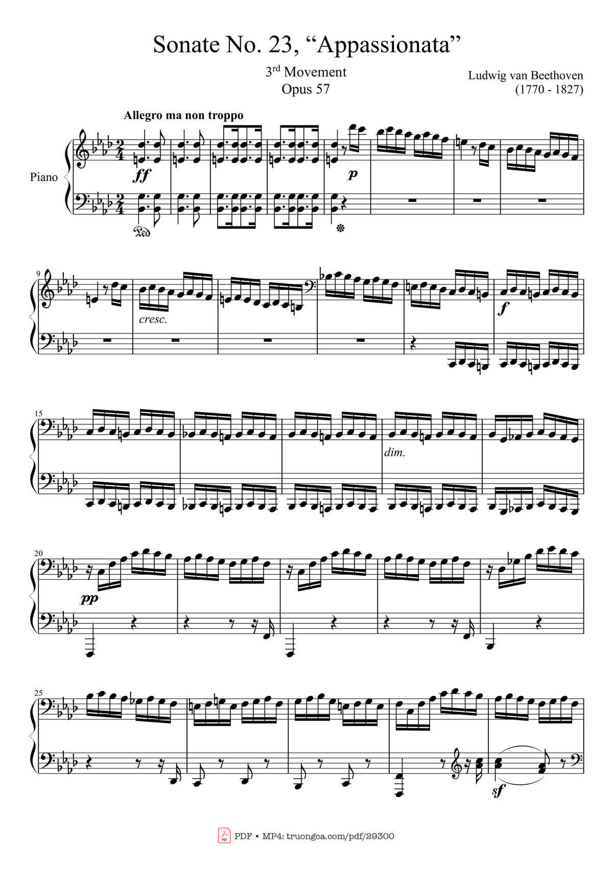 Các sheet PDF tương tự Sonate No. 23, Appassionata 3rd Movement: