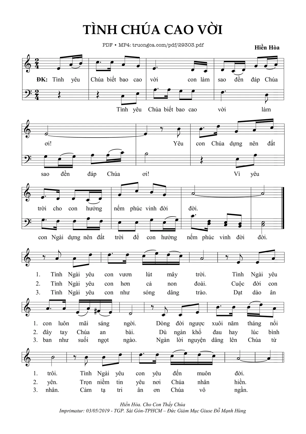 Các sheet PDF cùng tên Tình Chúa Cao Vời: