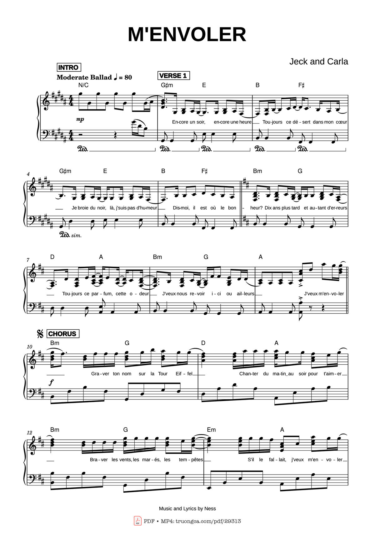 Download and print in PDF or MIDI free sheet music of M_envoler - Jeck for M_Envoler by Jeck arranged by lord.arranger for Piano (Solo)