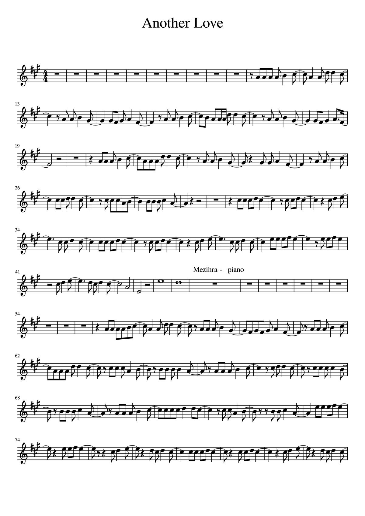 Phần nghe hát Another Love (Undefined) được nhúng từ Youtube, Musescore hoặc link ngoài và chịu sự kiểm soát bản quyền của bên thứ ba đó, vì vậy có thể bị xóa hoặc chèn quảng cáo bất kỳ lúc nào. Nếu bạn không nghe - xem được ca sĩ hát tức là đã bị Youtube hoặc Musescore kiểm soát.