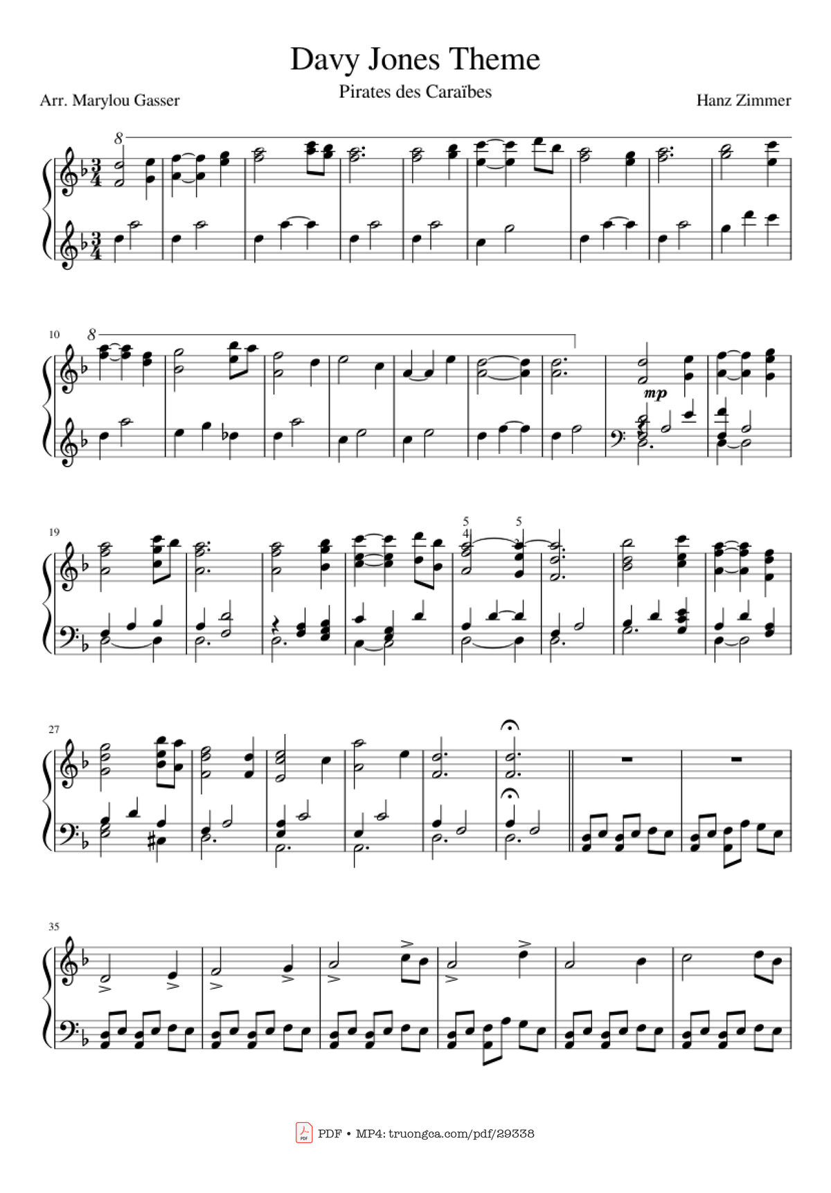 Các sheet PDF tương tự Davy Jones Theme Piano: