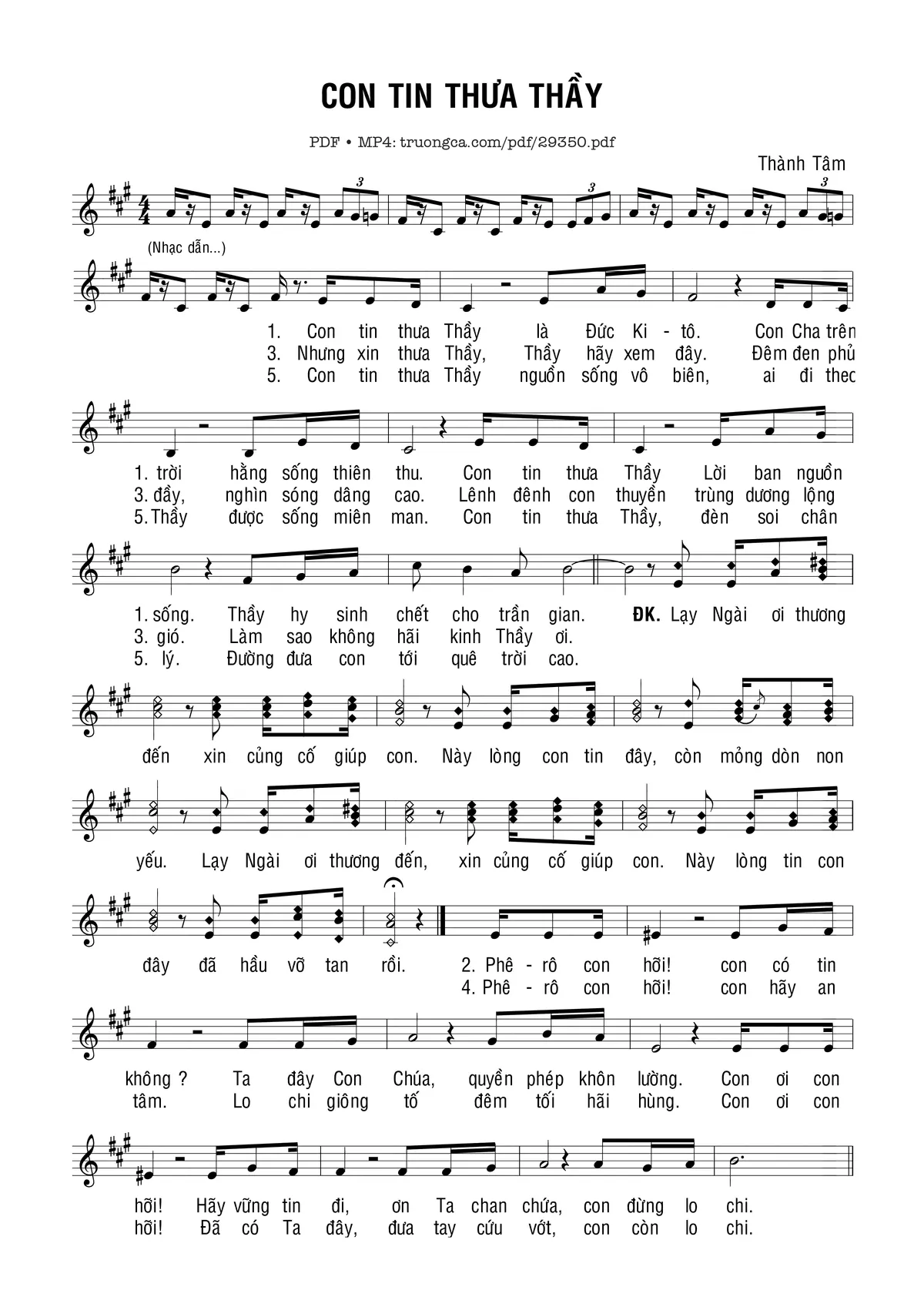 Thành Tâm Con tin thưa Thầy là Đức Kitô Con Cha trên trời [PDF] [Sheet] [Lời H.A] [Mp4/Midi]