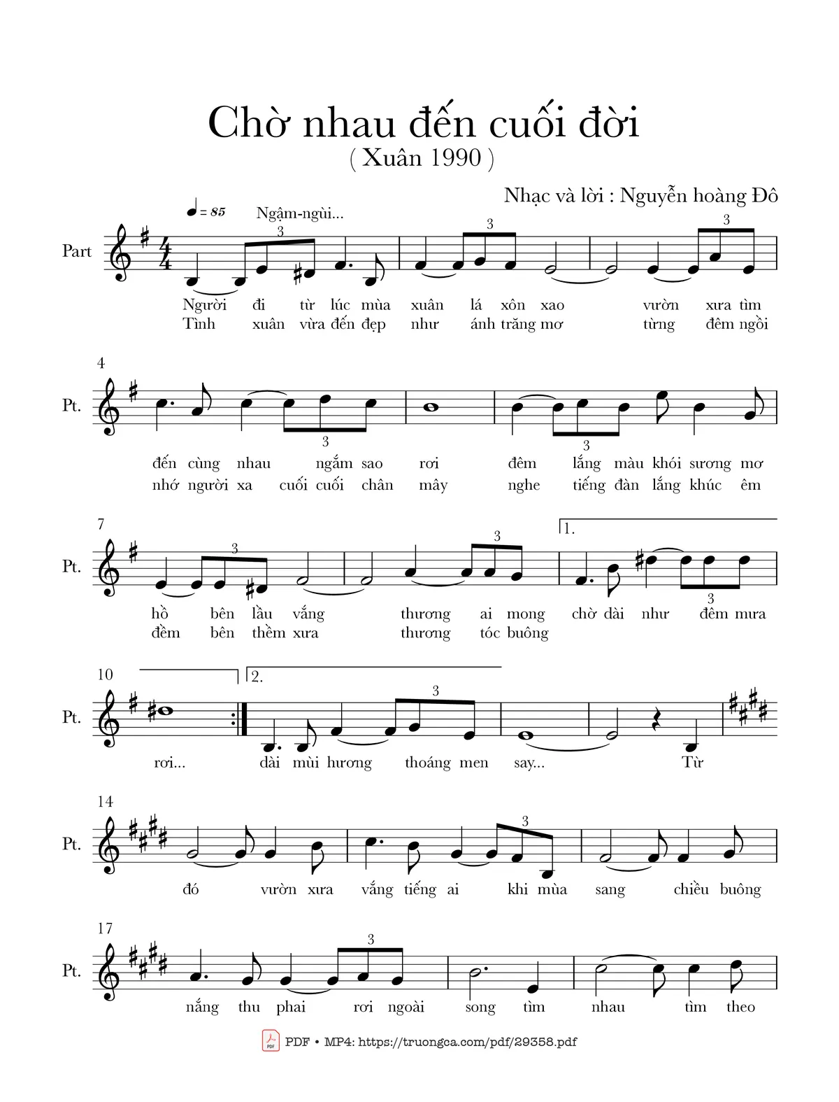 Nguyễn Hoàng Đô Người đi từ lúc mùa xuân lá xôn xao Vườn xưa tìm đến cùng nhau ngắm sao rơi [PDF] [Sheet] [Lời H.A] [Mp4/Midi]