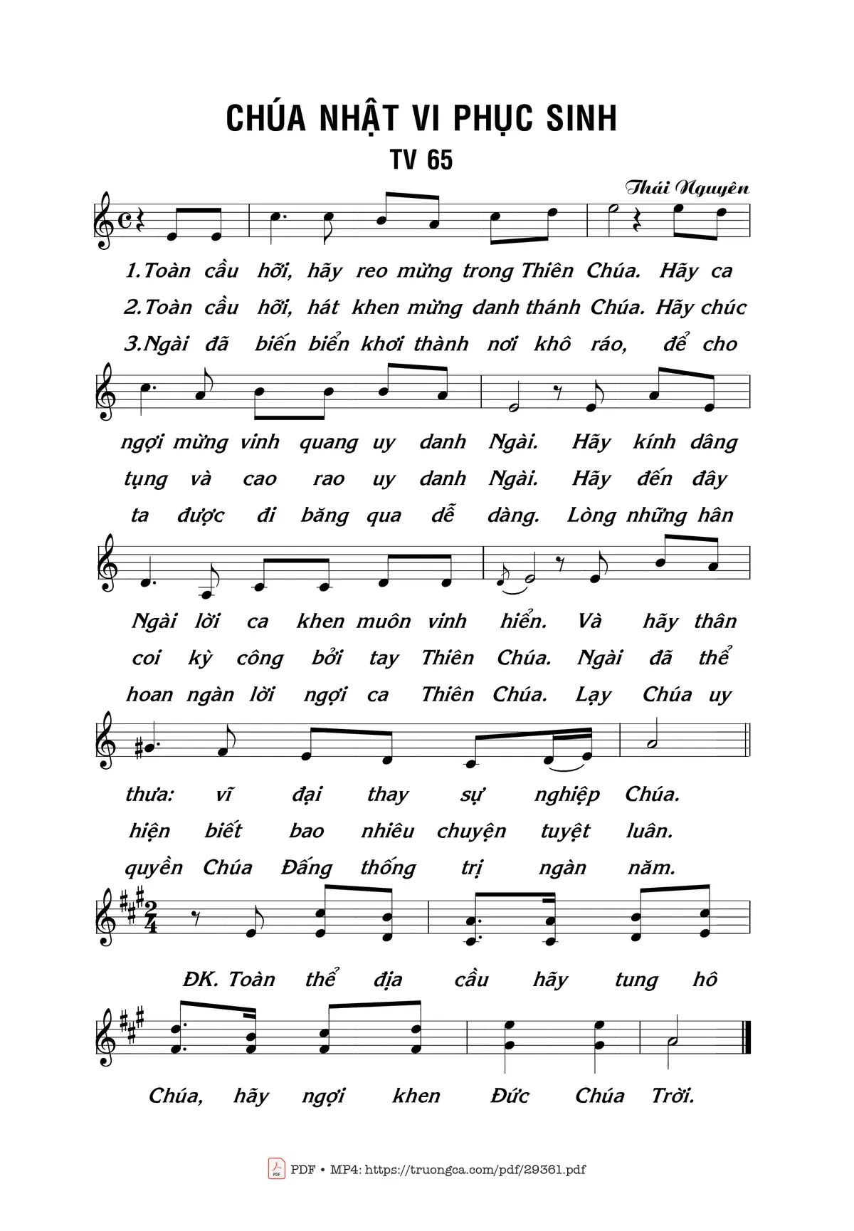 Thái Nguyên Toàn cầu hỡi hãy reo mừng trong Thiên Chúa [PDF] [Sheet] [Lời H.A] [Mp4/Midi]