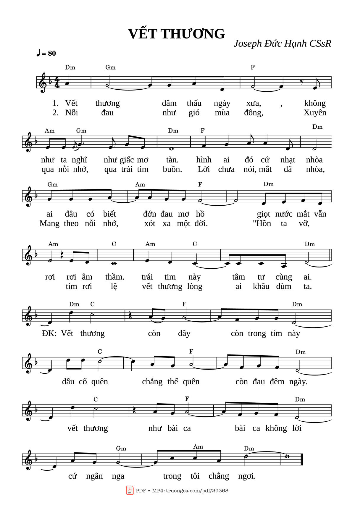 Đức Hạnh Vết thương đâm thấu ngày xưa [PDF] [Sheet] [Lời H.A] [Mp4/Midi]