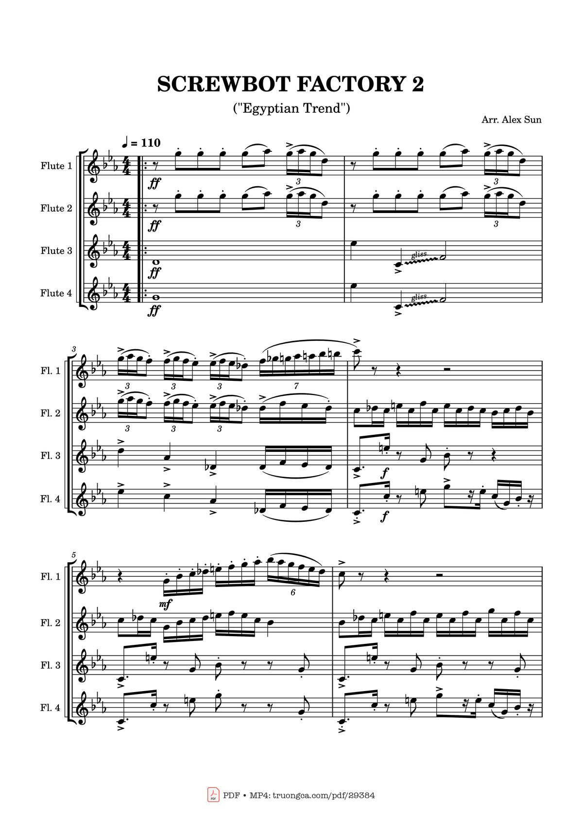 Download and print in PDF or MIDI free sheet music of Screwbot Factory 2 - Tsunku for Screwbot Factory 2 by Tsunku arranged by wet cat for Flute (Mixed Quartet)