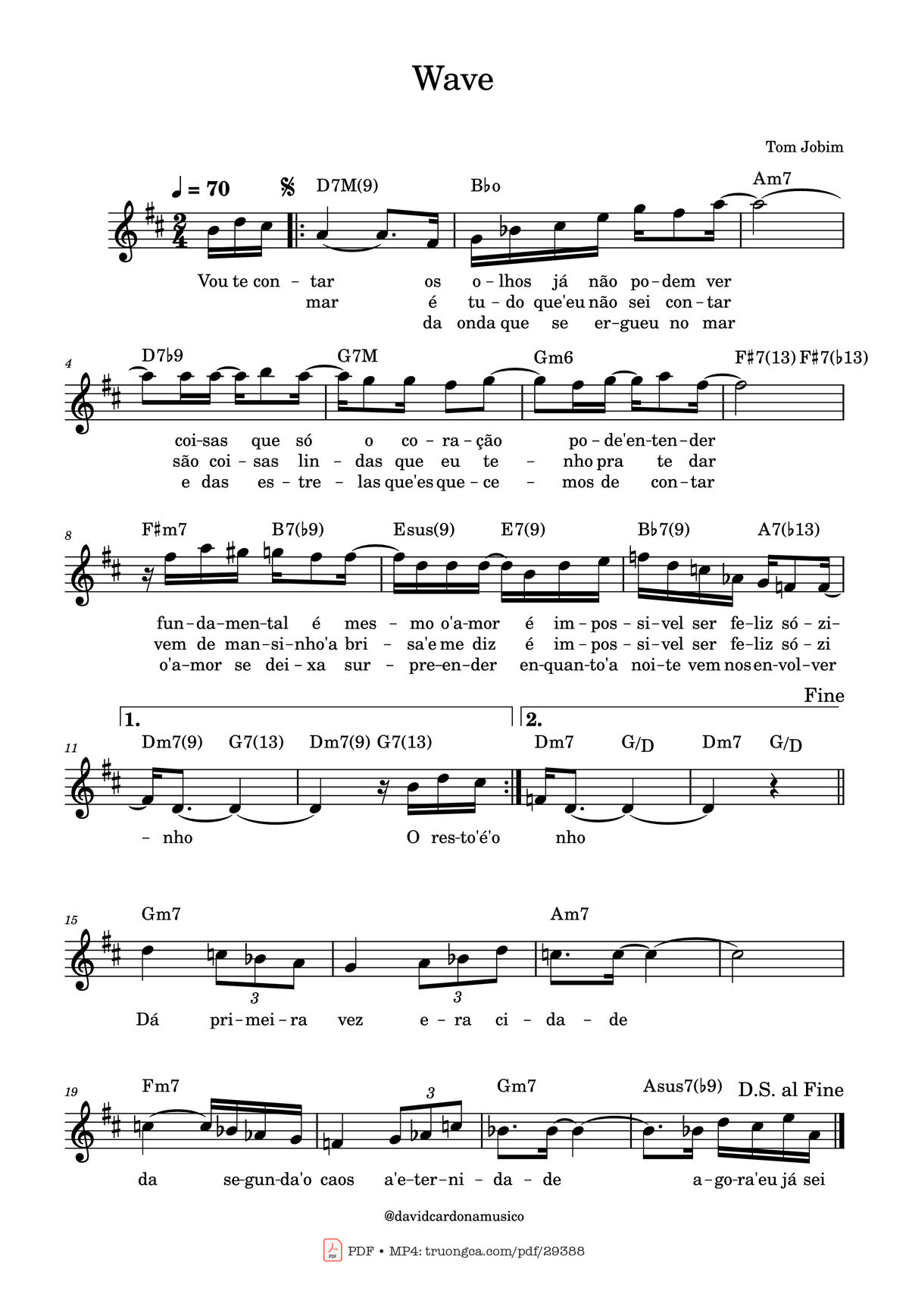 Phần nghe hát Wave (Tom Jobim) được nhúng từ Youtube, Musescore hoặc link ngoài và chịu sự kiểm soát bản quyền của bên thứ ba đó, vì vậy có thể bị xóa hoặc chèn quảng cáo bất kỳ lúc nào. Nếu bạn không nghe - xem được ca sĩ hát tức là đã bị Youtube hoặc Musescore kiểm soát.