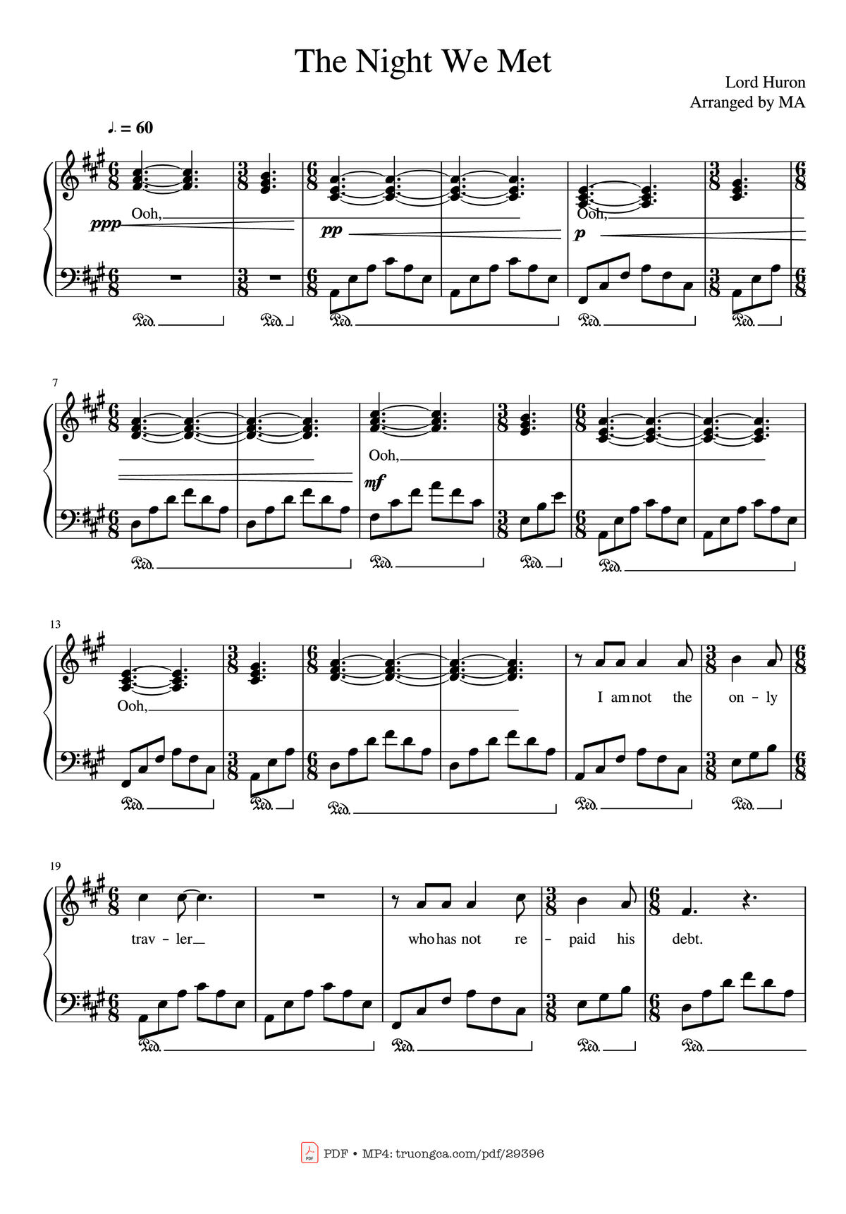 Phần đàn mẫu The Night We Met Piano (Lord Huron Arranged by MA) được nhúng từ Youtube, Musescore hoặc link ngoài và chịu sự kiểm soát bản quyền của bên thứ ba đó, vì vậy có thể bị xóa hoặc chèn quảng cáo bất kỳ lúc nào. Nếu bạn không nghe - xem được phần đàn mẫu hát mẫu tức là đã bị Youtube/Musescore kiểm soát.