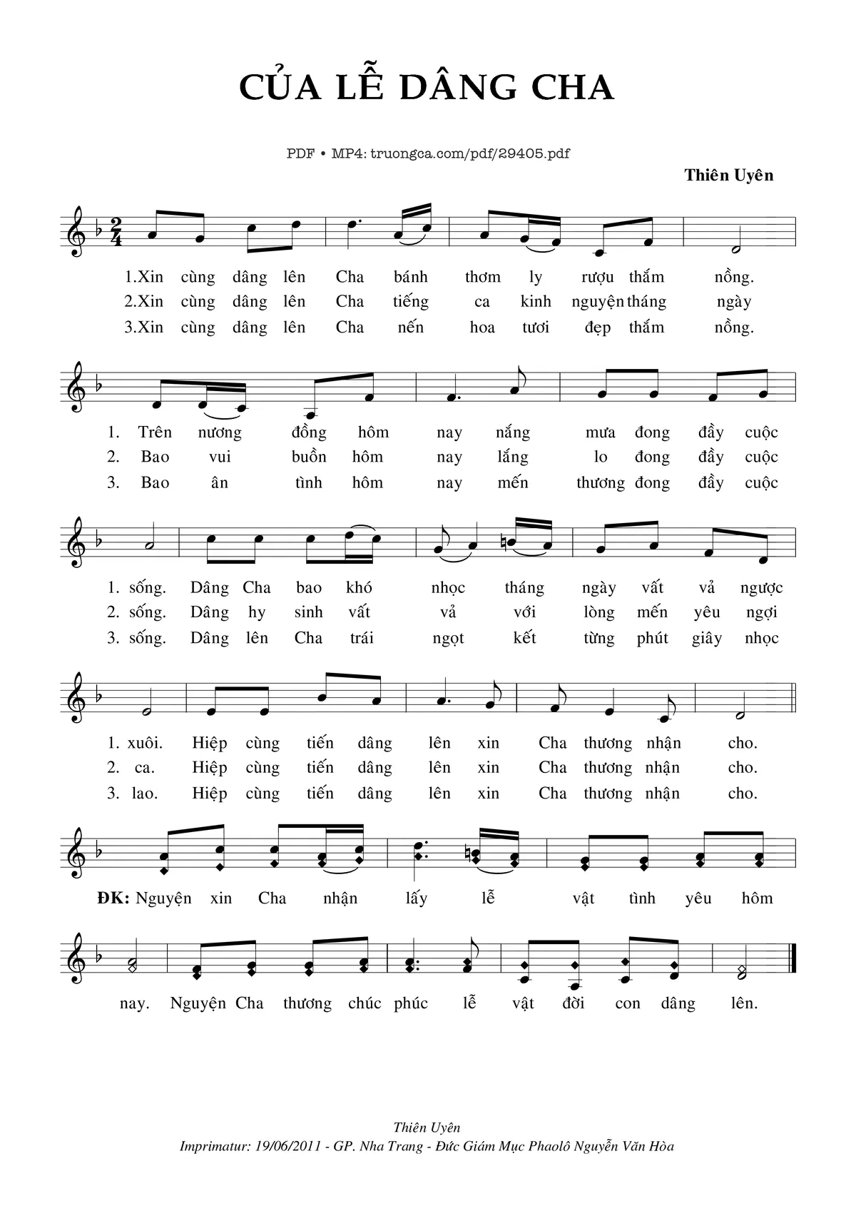 🌾 Imprimatur, Thông tin chuẩn nhận dùng trong phụng vụ Công Giáo: Dâng Lễ – Imprimatur – Gp. Nha Trang:19.06.2011