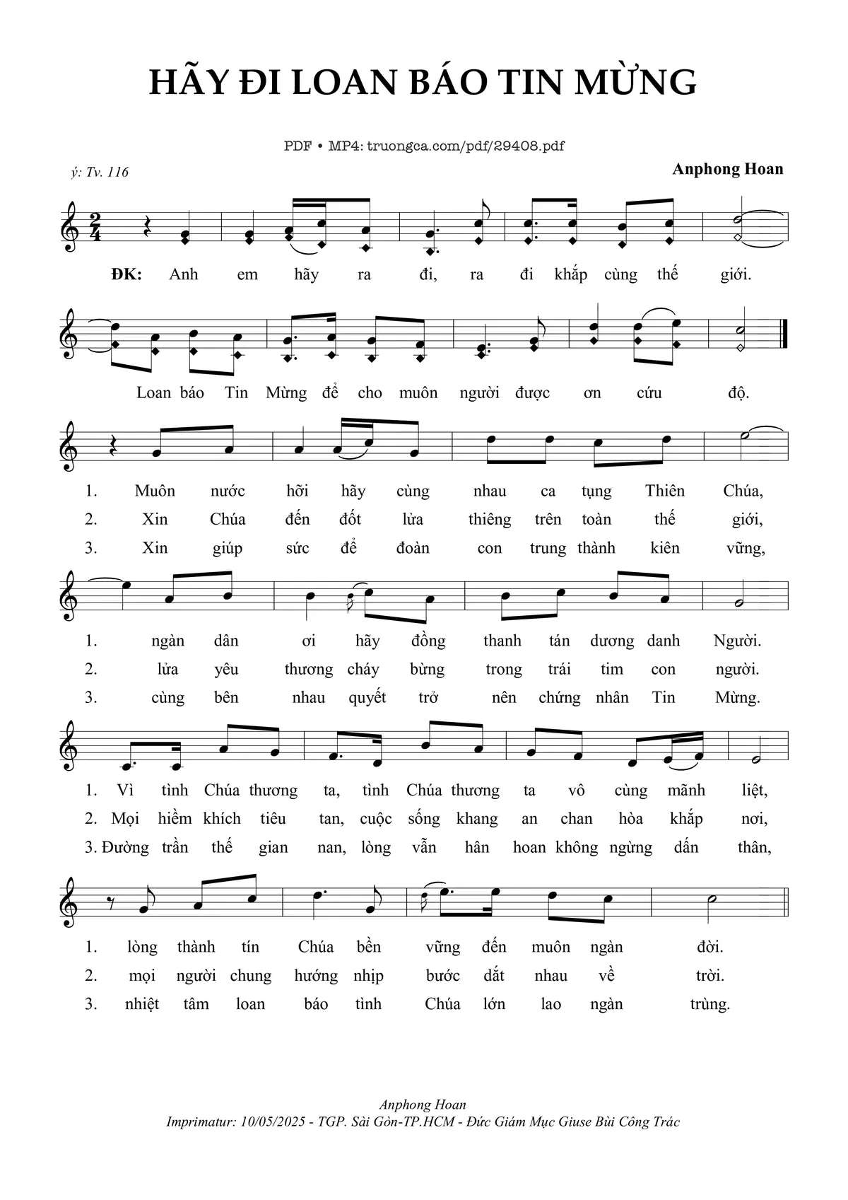 Các sheet PDF cùng tên Hãy Đi Loan Báo Tin Mừng: