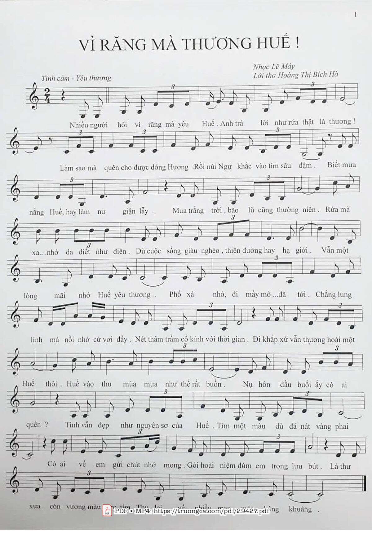 Lê Máy Nhiều người hỏi vì răng mà yêu Huế Anh trả lời như rứa thật là thương [PDF] [Sheet] [Lời H.A] [Mp4/Midi]