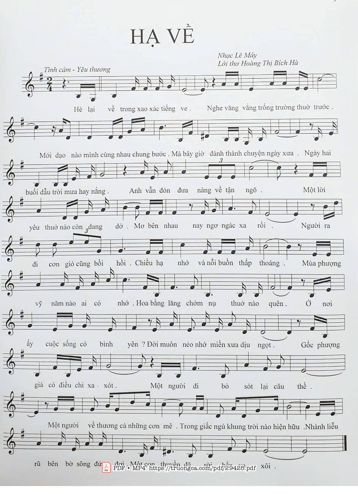 Lê Máy Hè lại về trong xao xác tiếng ve Nghe văng vẳng trống tan trường thuở trước [PDF] [Sheet] [Lời H.A] [Mp4/Midi]